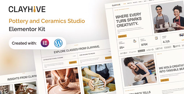 ClayHive Elementor Kit shapes standout pottery and ceramics websites.