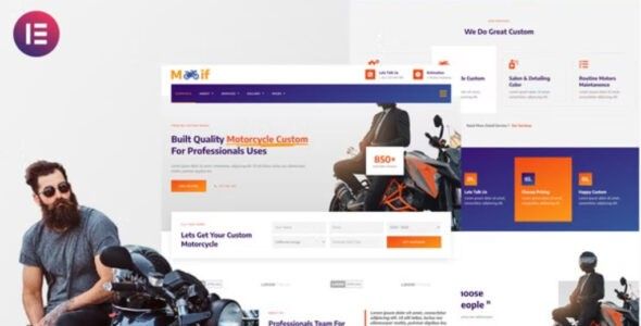 Modif – Motorcycle Custom And Modification Elementor Template Kit is a collection of layouts for the Elementor page builder WordPress plugin, designed for use with Elementor Pro Version for a clean Design. It works with most themes and is optimized for use with the free Hello Elementor theme.